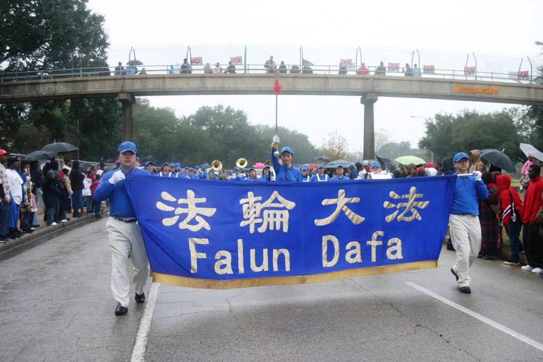 法轮功学员参加在德州休士顿市中心举行的马丁·路德·金纪念日大游行2008-1-21