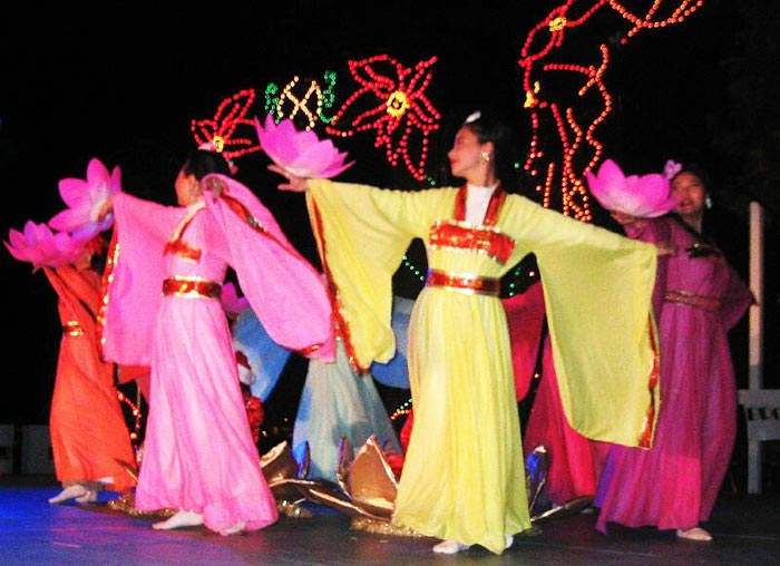 在德州奥斯汀灯节上 法轮功学员表演优美的舞蹈