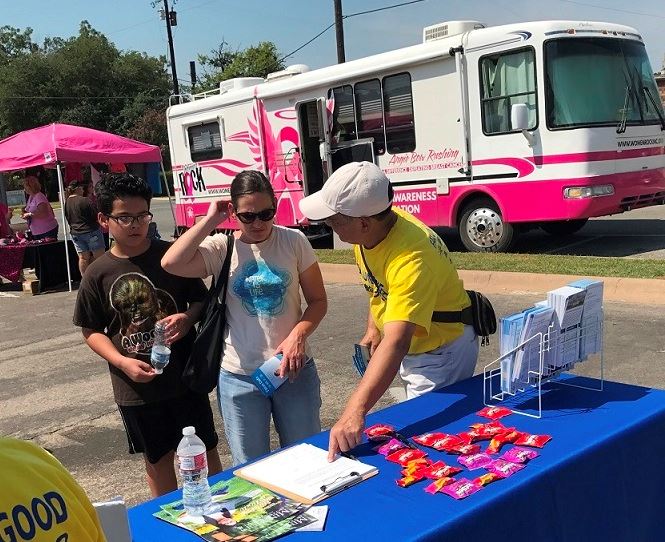 法轮功学员在达拉斯美食节上介绍法轮大法,民众说"这就是我一直在寻找的"