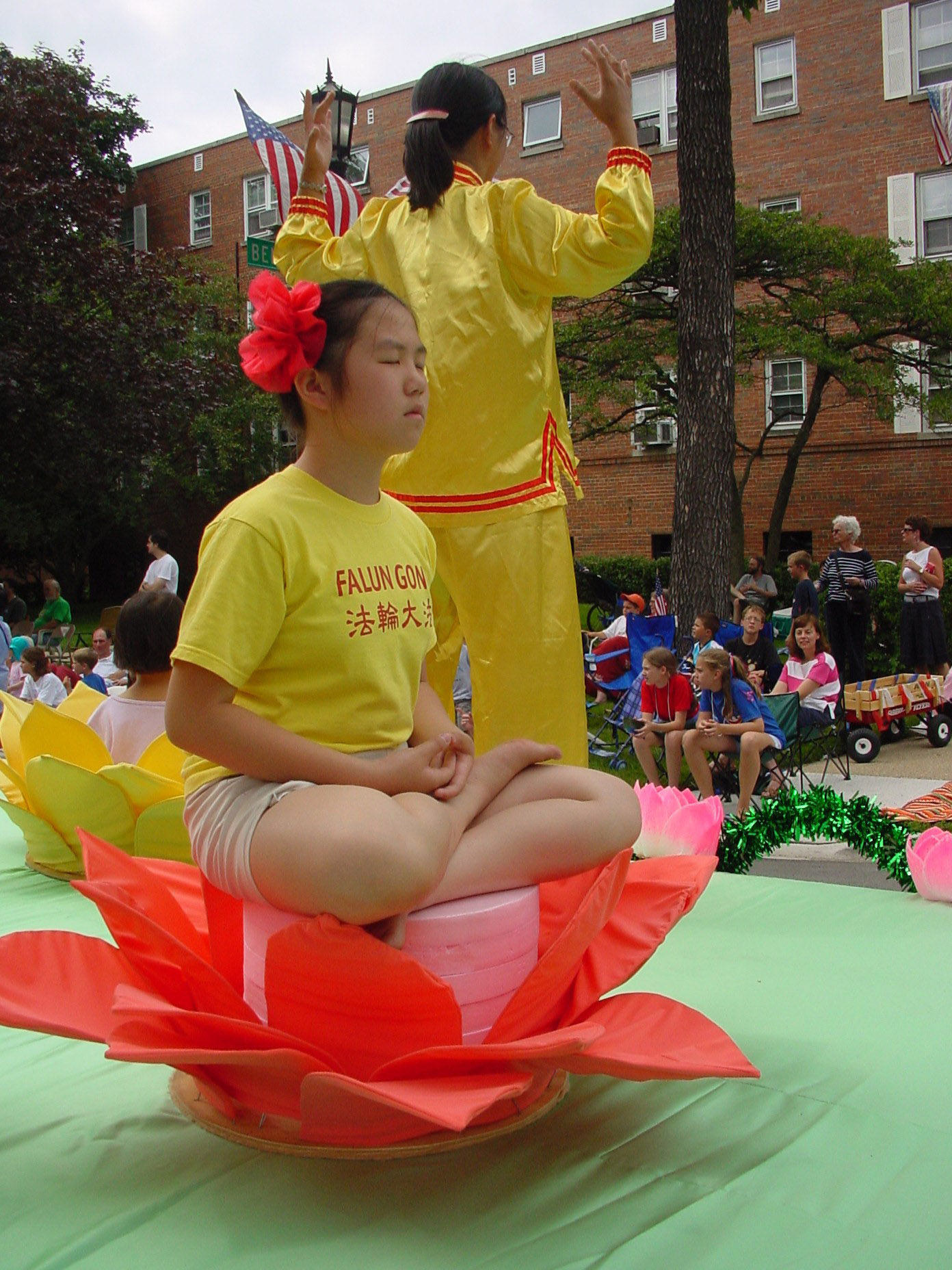 法轮功参加历史最悠久的美国独立日游行 图为花车上的花仙舞