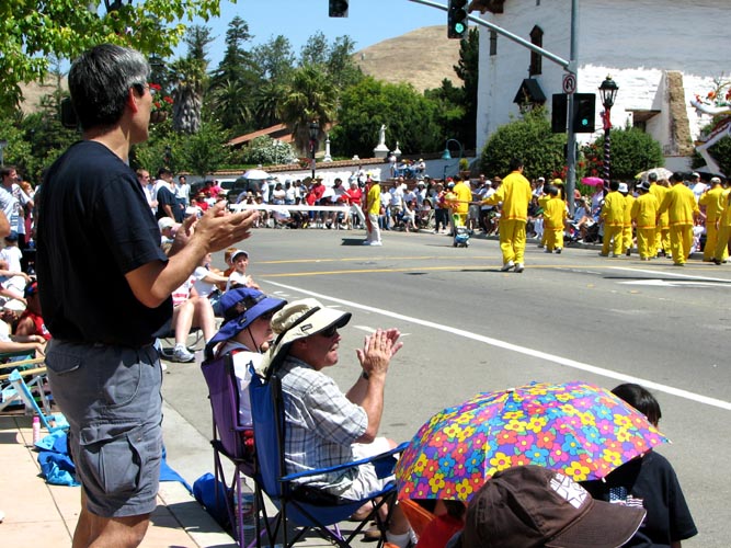 法轮功学员参加美国湾区山景城历年一次的"吹乐节"大游行