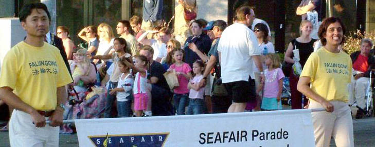 西雅图海洋节游行中首次出现法轮功学员的身影(图)