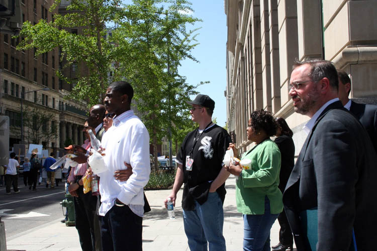 法轮功学员在华盛顿法瑞格特广场集会,抗议中共虐杀法轮功学员,要求全面调查迫害真相 2006-4-13