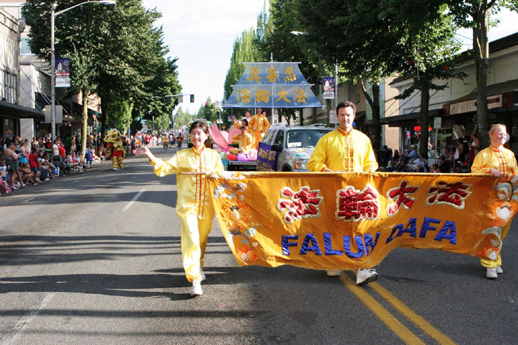 法轮功学员参加华盛顿州艾弗里特市的独立日庆祝游行