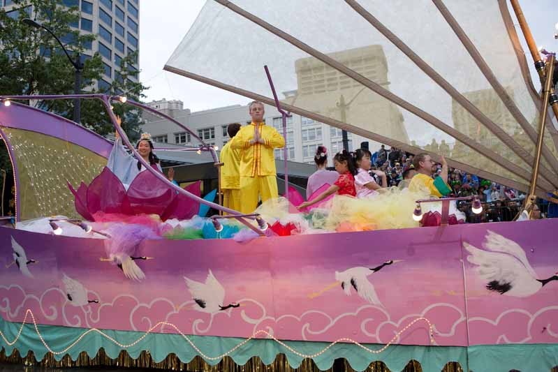 波特兰玫瑰节游行 法轮功学员花车引注目