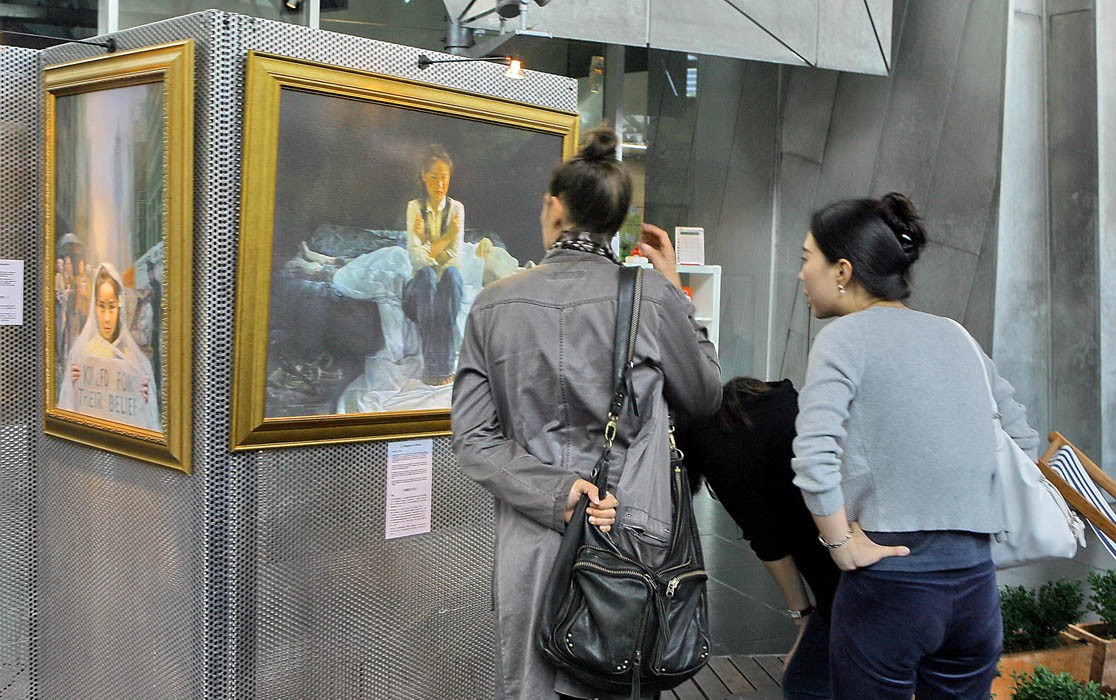 "真善忍"国际美展在加拿大维多利亚展出 令参观民众震惊