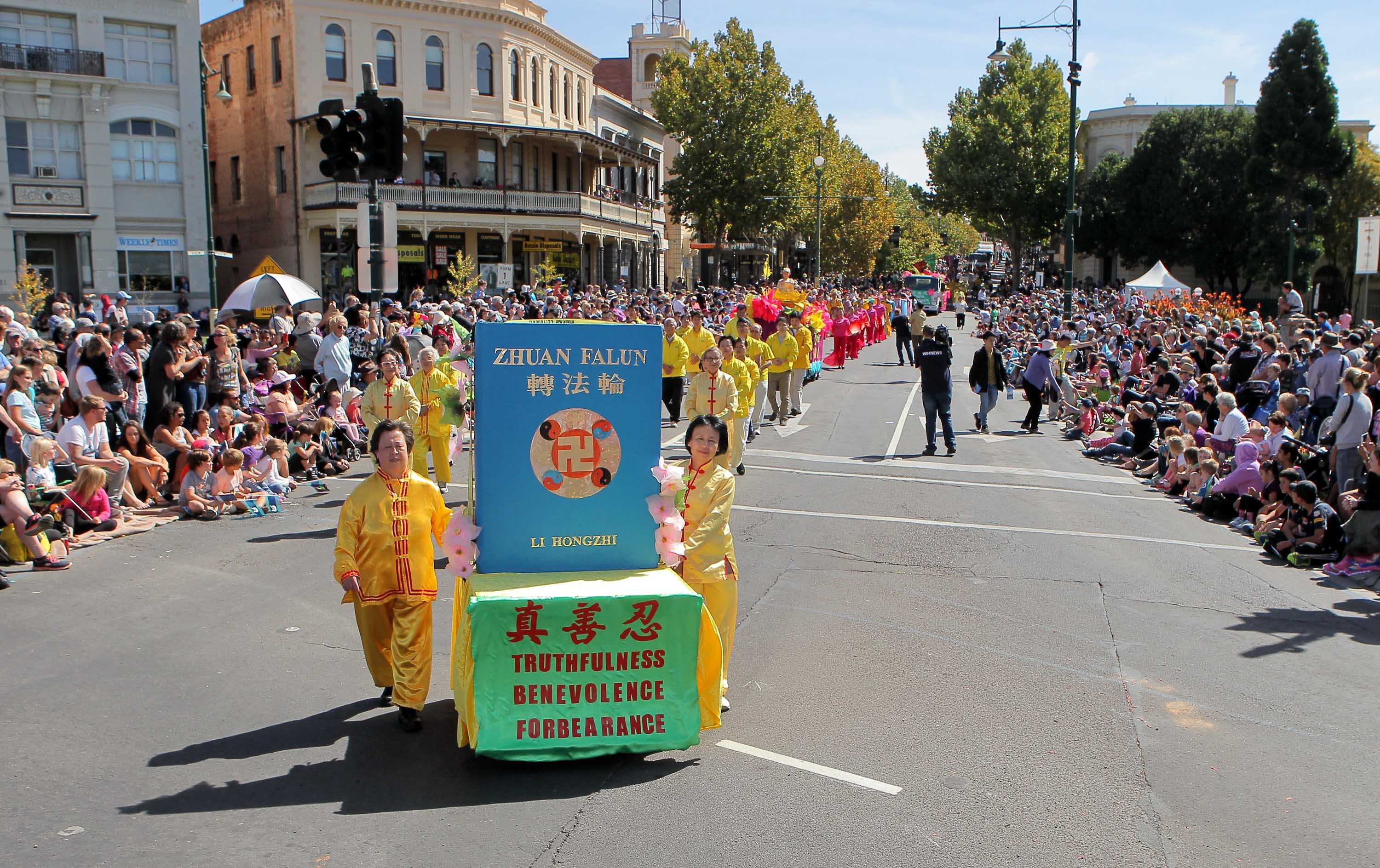 法轮功学员参加了一年一度澳洲维省班迪戈市的复活节大游行
