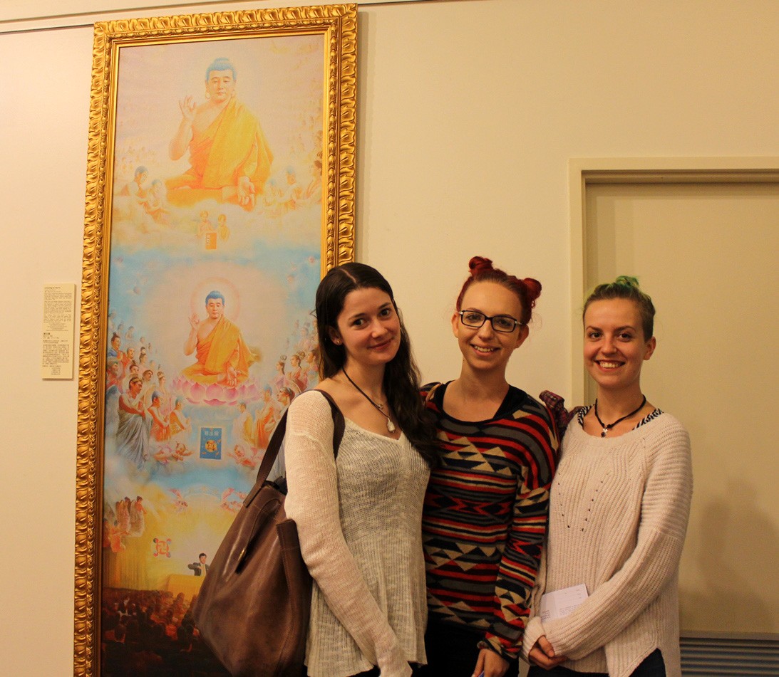 从左至右:瑞贝卡(Rebacca),佐依(Zoe)和玛克辛(Maxine)结伴观看了纪录片以及真善忍画展