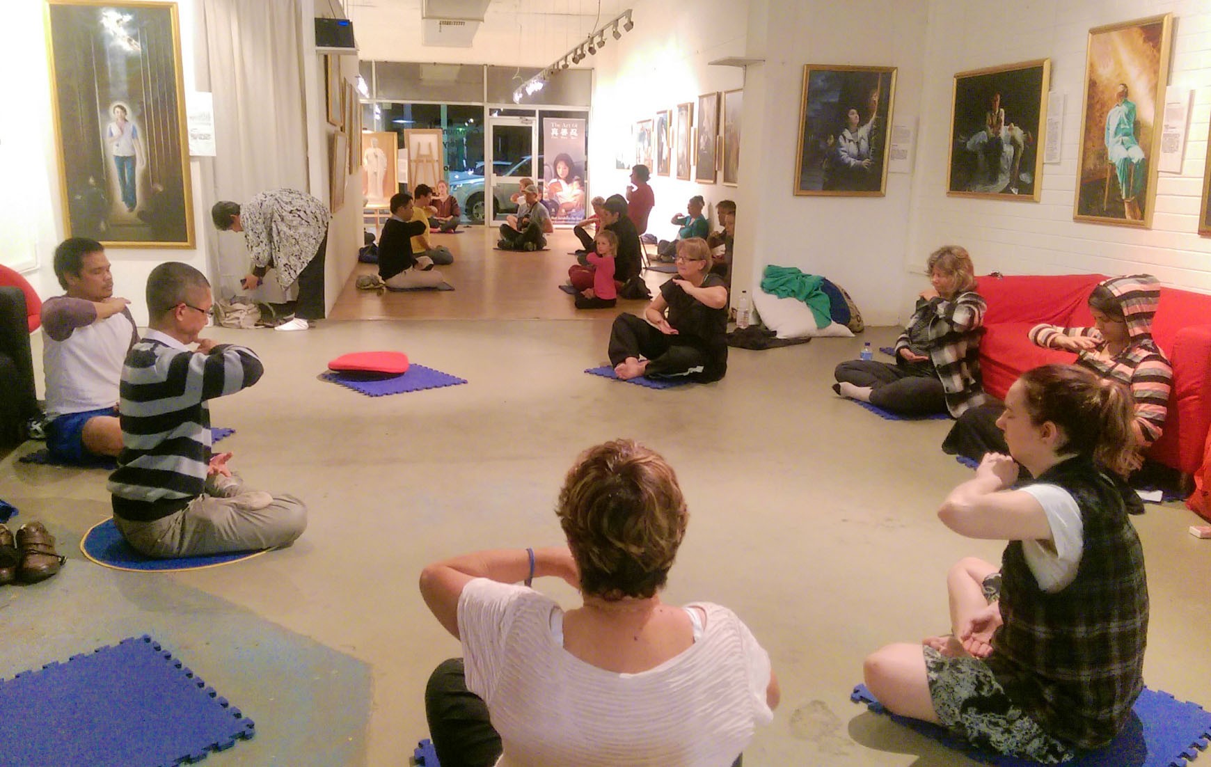 ACDC社区画廊内学法轮功功法的民众