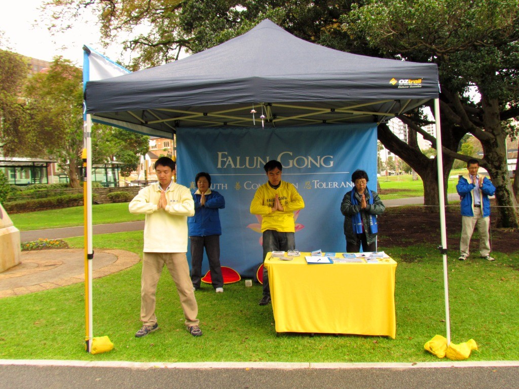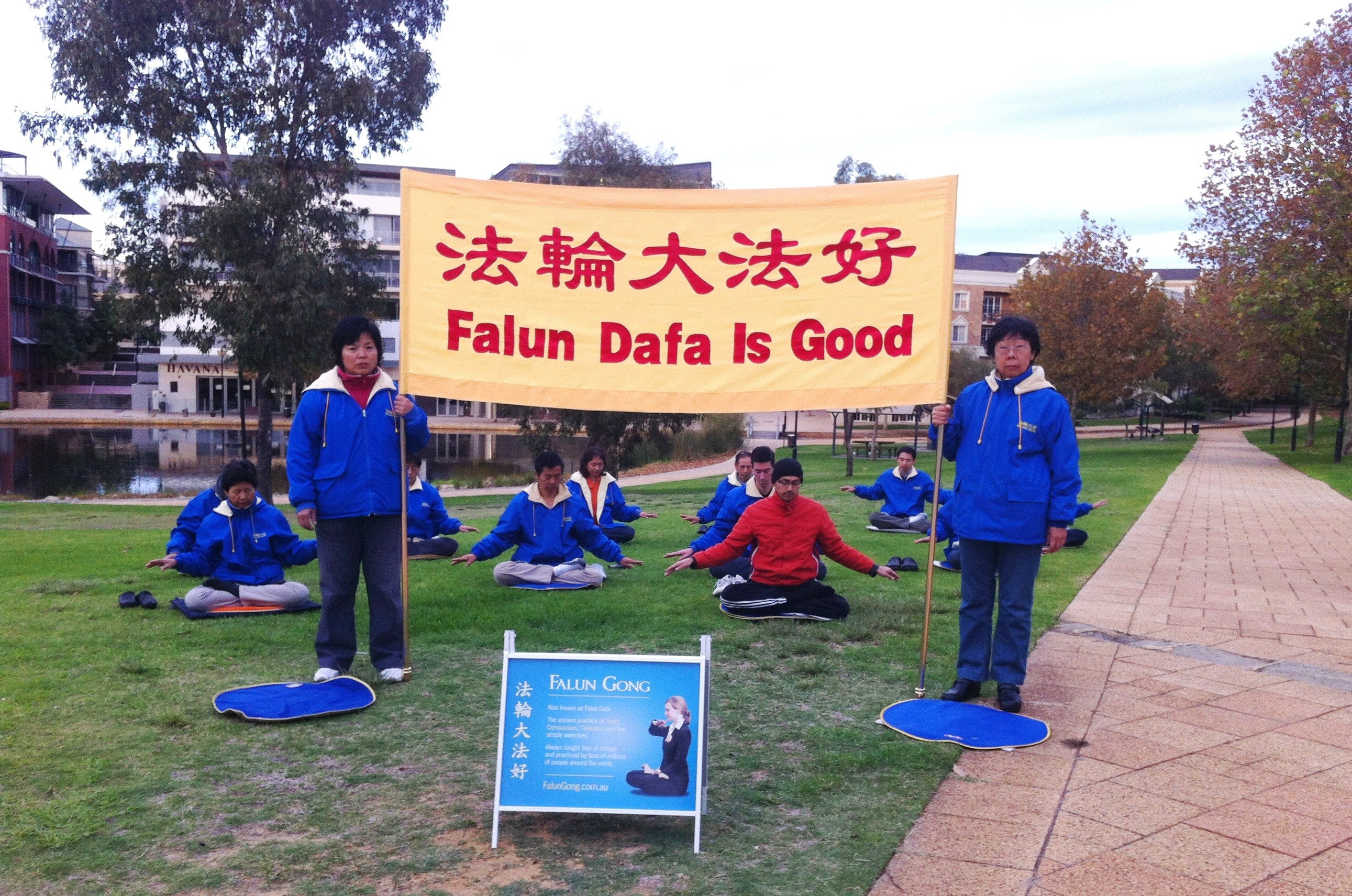 法轮功学员在澳大利亚珀斯市举办集体炼功纪念"4.25"活动