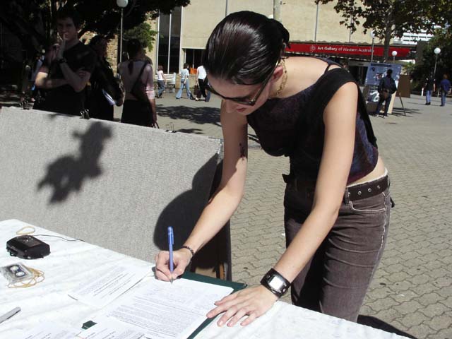 西澳佩斯市学员举办酷刑图片展民众签名呼吁制止中共对法轮功的迫害2006-1-22