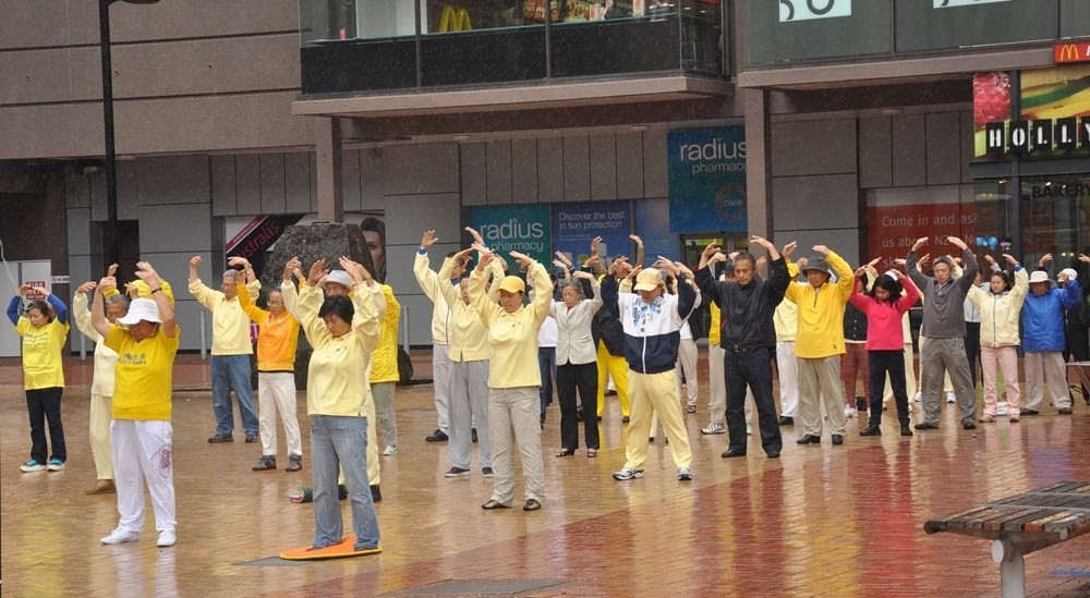 法轮功学员在市中心的奥缇亚(Aotea)广场举行了"纪念四二五万人和平上访十七周年"集会