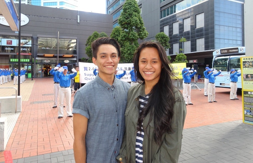 新西兰人莱恩和莎琳支持法轮功
