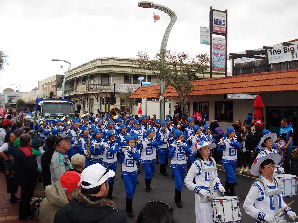 法轮功学员的腰鼓队参加新西兰陶朗加圣诞游行