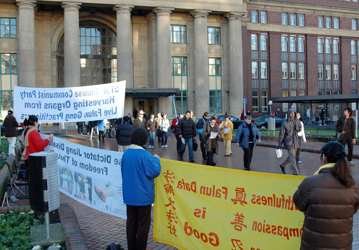 新西兰法轮功学员在惠灵顿火车站抗议中共活体摘取法轮功学员器官2006-6