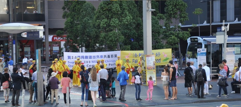 奥克兰法轮功学员在市中心的Aotea广场前举行讲真相活动