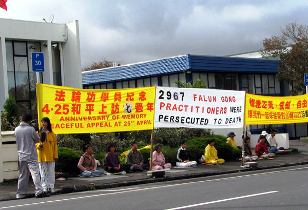 新西兰法轮功学员在奥克兰中领馆前集会,纪念四•二五
