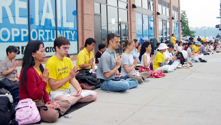 法轮功学员在纽约中领馆前发正念 美国 纽约 2004年