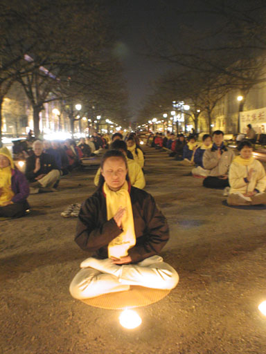法轮功学员在江xx访德期间悼念被迫害致死的同修并持续发正念清除邪恶 德国 2002-4