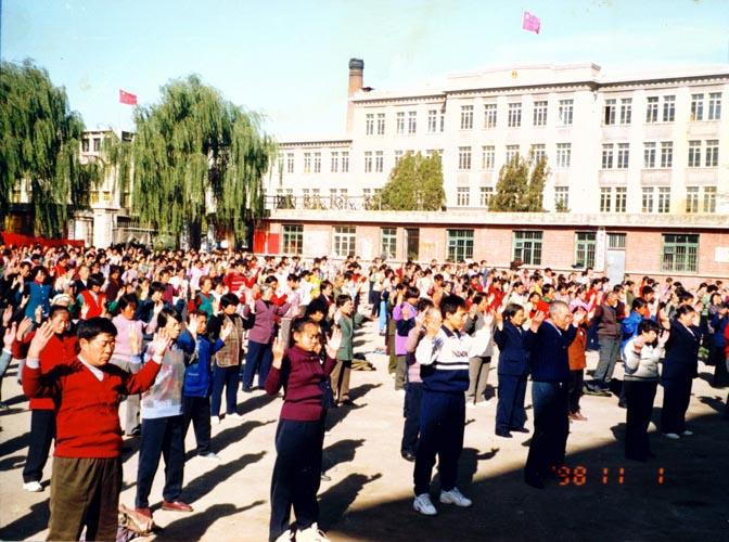 1998年法轮功学员在辽宁凌源市政府门前集体炼功