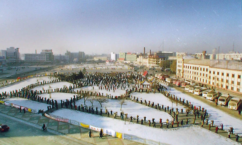 99年7.20之前,佳木斯法轮功学员集体炼功洪法场面