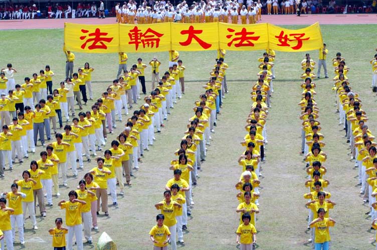 千名法轮功学员在2004年台北市老人健康运动大会演示功法 台湾台北 2004-6-12