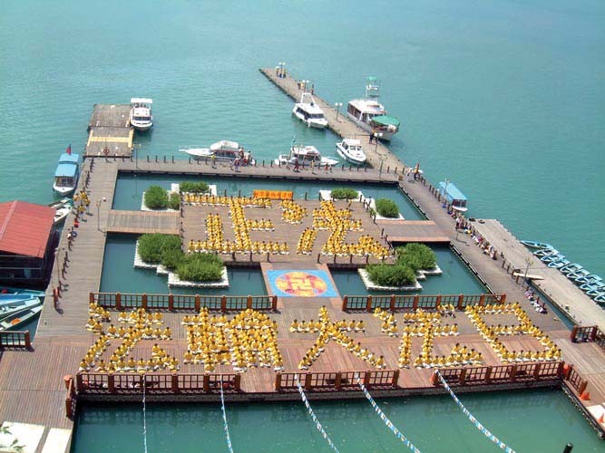 台湾法轮功学员进行大型排字炼功庆祝法轮大法日 台湾 2002-5