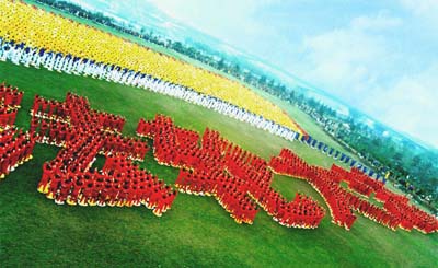 花开万朵。法轮功学员在武汉汉水公园大型摆字炼功。