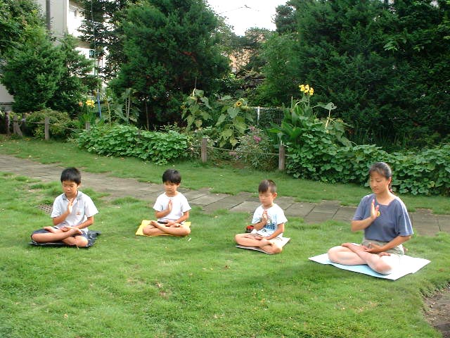 日本东京法轮功小弟子和大同修一块炼功 日本 东京 2001-9