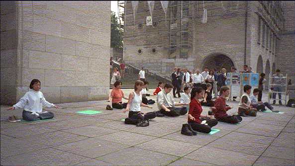 比利时法轮功学员在集体炼功 比利时
