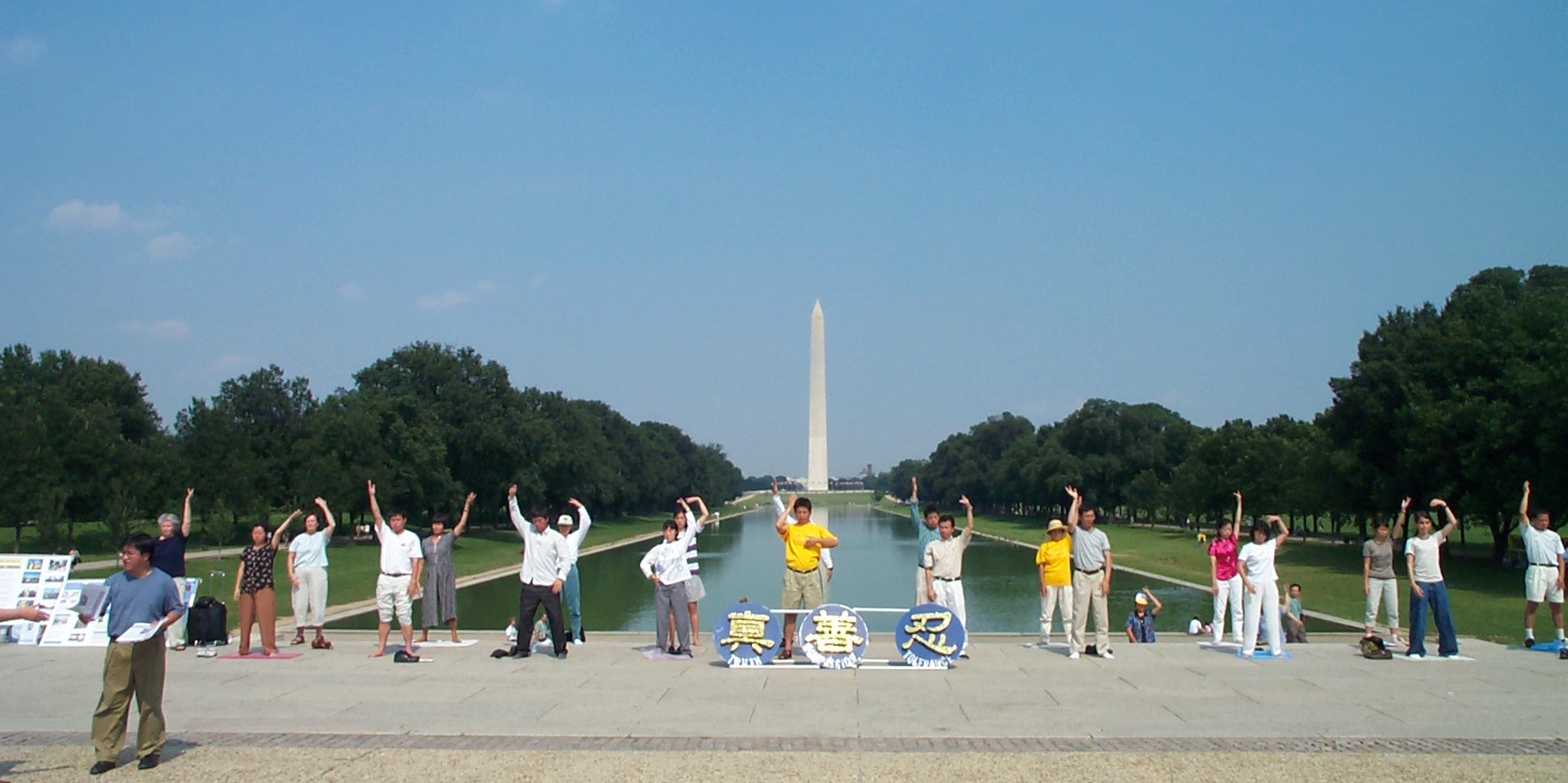 华府部分法轮功学员在林肯纪念堂前展示功法 美国华盛顿 2000-7