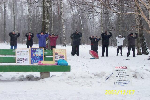 莫斯科最大的森林公园里不管酷暑还是冰雪覆盖的寒冬学员都来炼功