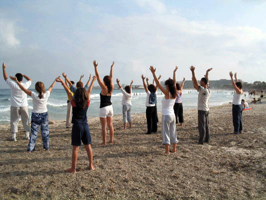 西班牙法轮功学员在海岛城市拉斯巴拉玛斯(las palmas)炼功
