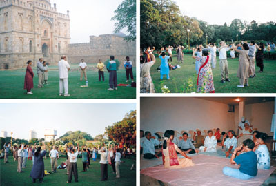 印度法轮功学员在教功和集体炼功 印度 2000-3