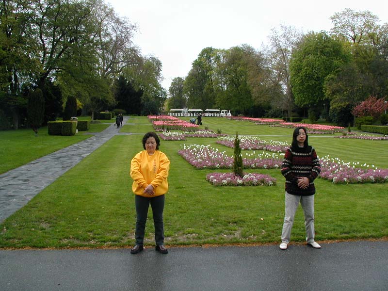 人权会期间 法轮功学员在日内瓦炼功洪法 瑞士 日内瓦 2001-4