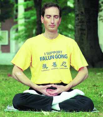 印第安那报介绍法轮功文章中图片:学员在炼功 美国 2001-8