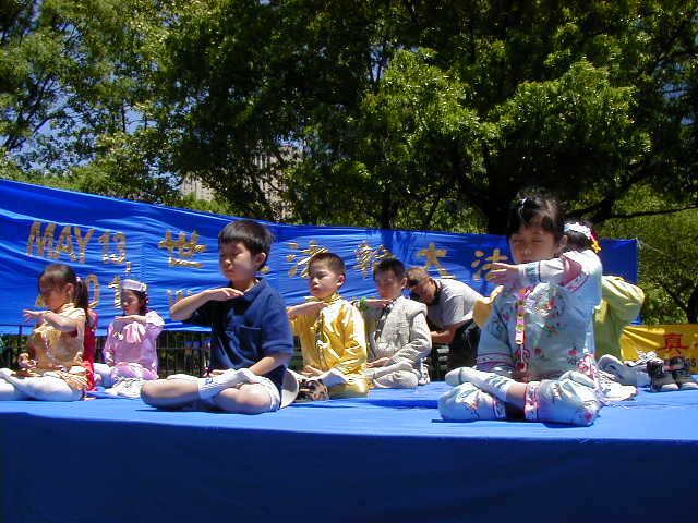 小弟子在纽约第二届世界法轮大法日庆祝活动之一亚洲文化节上表演炼功(2001年5月13日)
