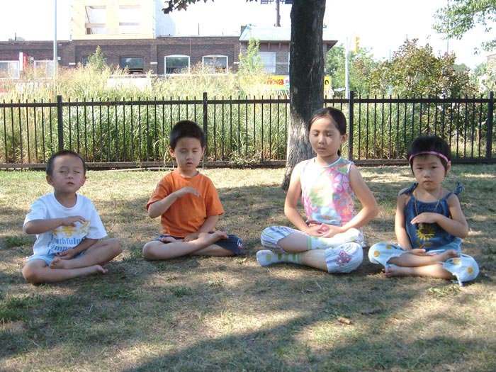 多伦多明慧学校豆豆园的小弟子们集体炼功