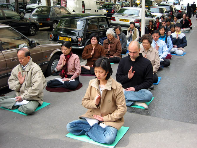 法国大法弟子中国使馆前发正念 支持审判邪恶之首江XX