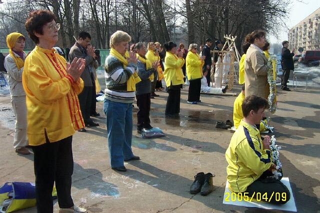 新西兰南岛学员在发正念 俄罗斯学员中使馆前发正念