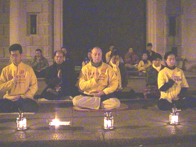 英国法轮功学员周末在中使馆前24小时连续发正念接力绝食请愿第18天 英国 2002-4