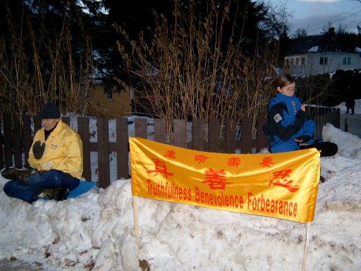挪威法轮功学员在中国大使馆前炼功发正念敦促中国停止迫害法轮功 挪威 2003-1