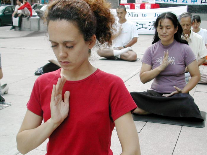 加拿大蒙特利尔法轮功学员在唐人街中山公园模拟审判江xx时集体发正念 加拿大 2003-8