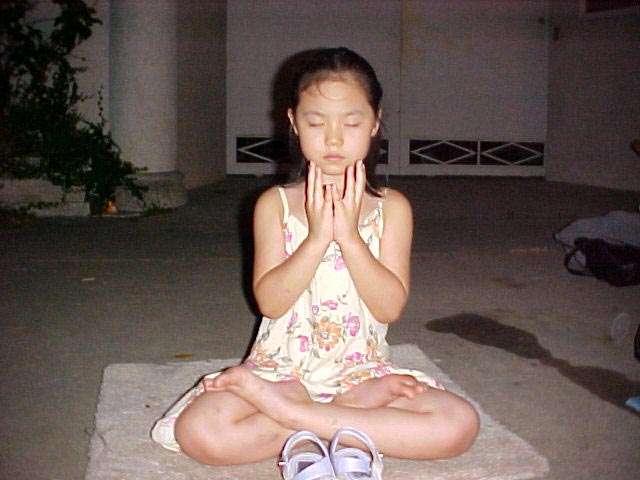 休士顿法轮功学员在中领馆前烛光守夜纪念“4.25”.和平上访三周年 ,图为小弟子在发正念 美国 休士顿 2002