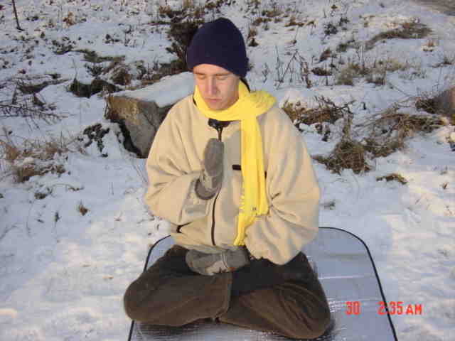 瑞典斯德哥尔摩法轮功学员在中使馆前冒雪静坐追悼被迫害致死的同修刘成军并要求严惩凶手 瑞典2003-12