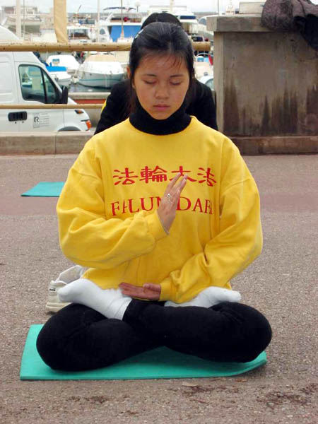 摩纳哥法轮功学员和平请愿呼吁停止迫害法轮功 图为学员齐发正念 摩纳哥 2002-12