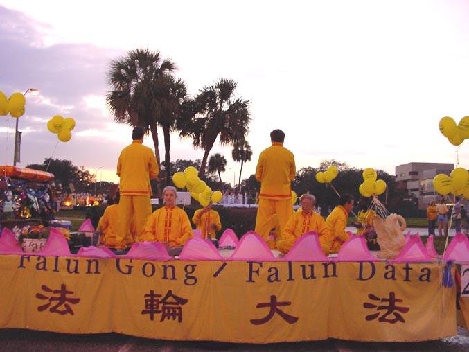 法轮功学员参加南佛州大学的年度校友会彩车游行 2001-11-05