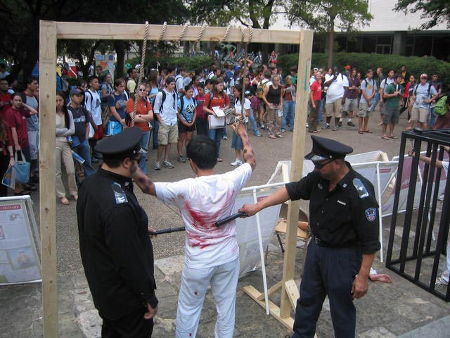 法轮功学员在德州大学奥斯汀分校举行“反酷刑展”, 揭露江氏集团对法轮功群众的迫害 2004-09-22 法轮功学员在南非德班理工大学举行讲座,讲述法轮功真相 2004-10-15