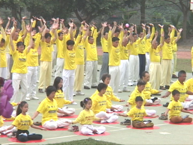 法轮功学员在台湾南投国姓乡育乐国小校庆功法演示 2002-03-25