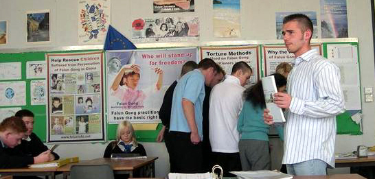 英国学员应邀在苏格兰盾巴登高中介绍法轮功 2005-11-17